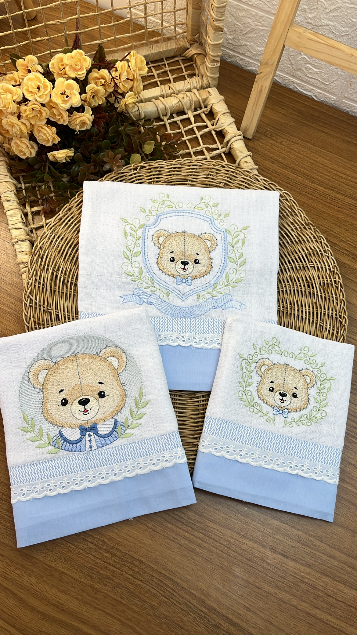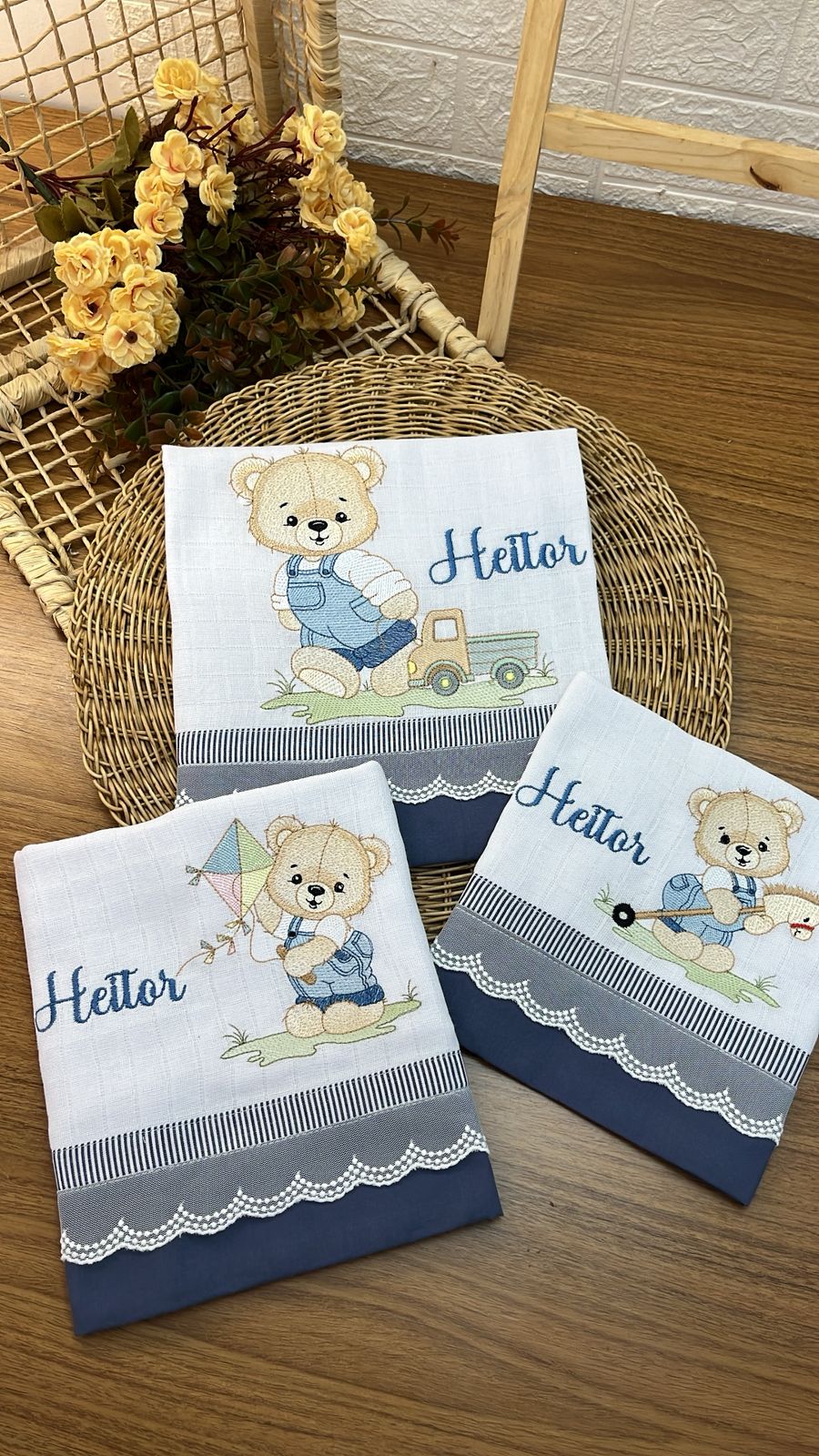 Bordados delicados e temáticos (como ursinhos, brinquedos, flores etc.).