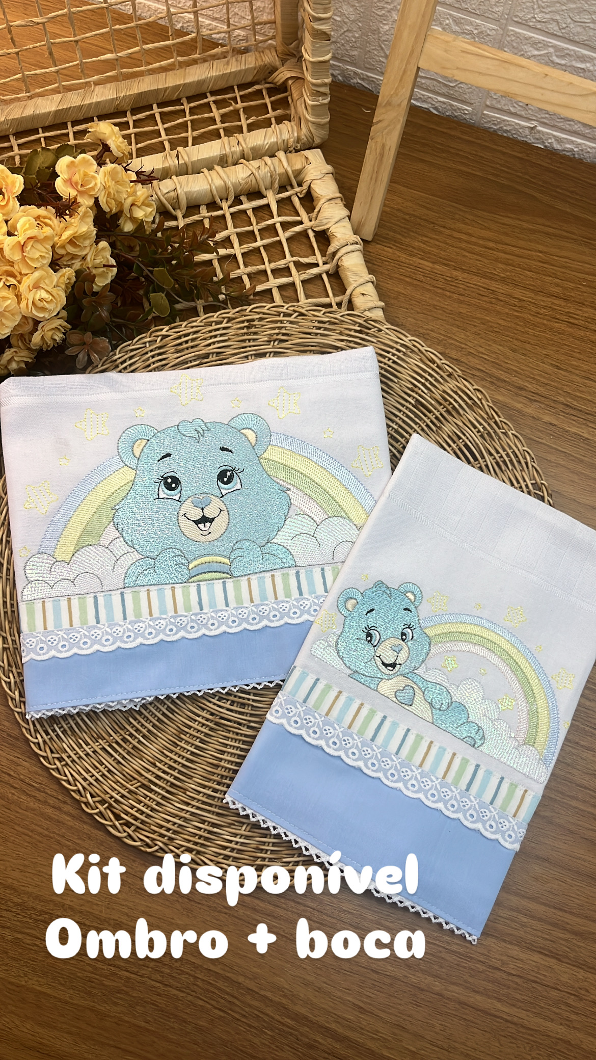 Cada peça pode ser personalizada com o nome do bebê, tornando o kit ainda mais especial e exclusivo. Ideal para acompanhar os momentos de cuidado e carinho, seja em casa, em passeios ou na maternidade.
