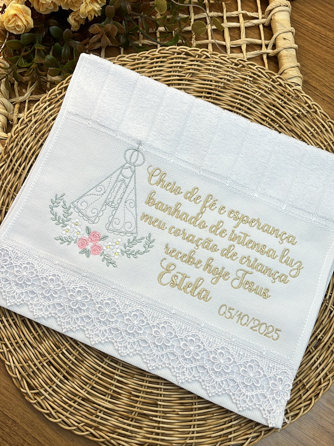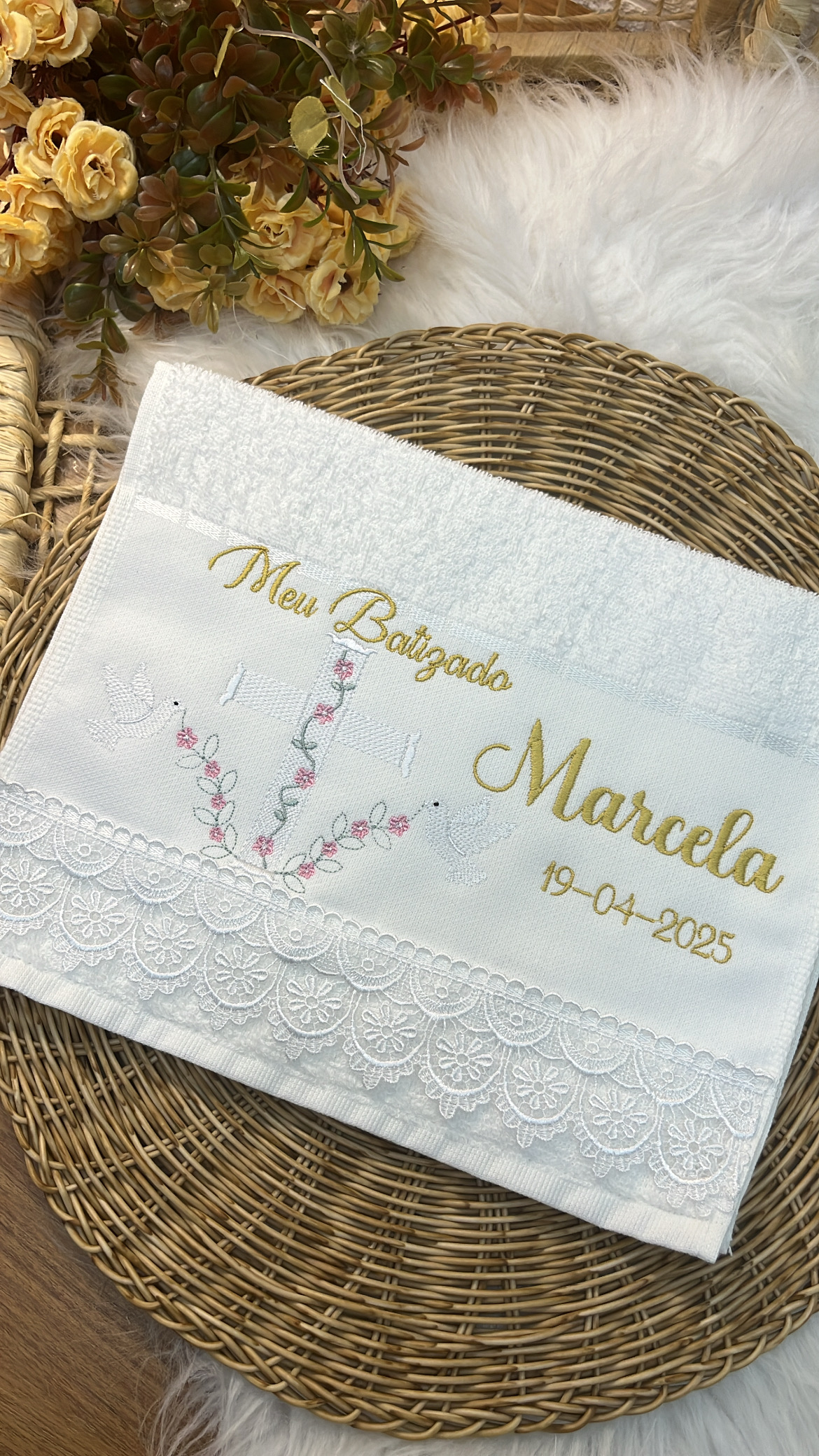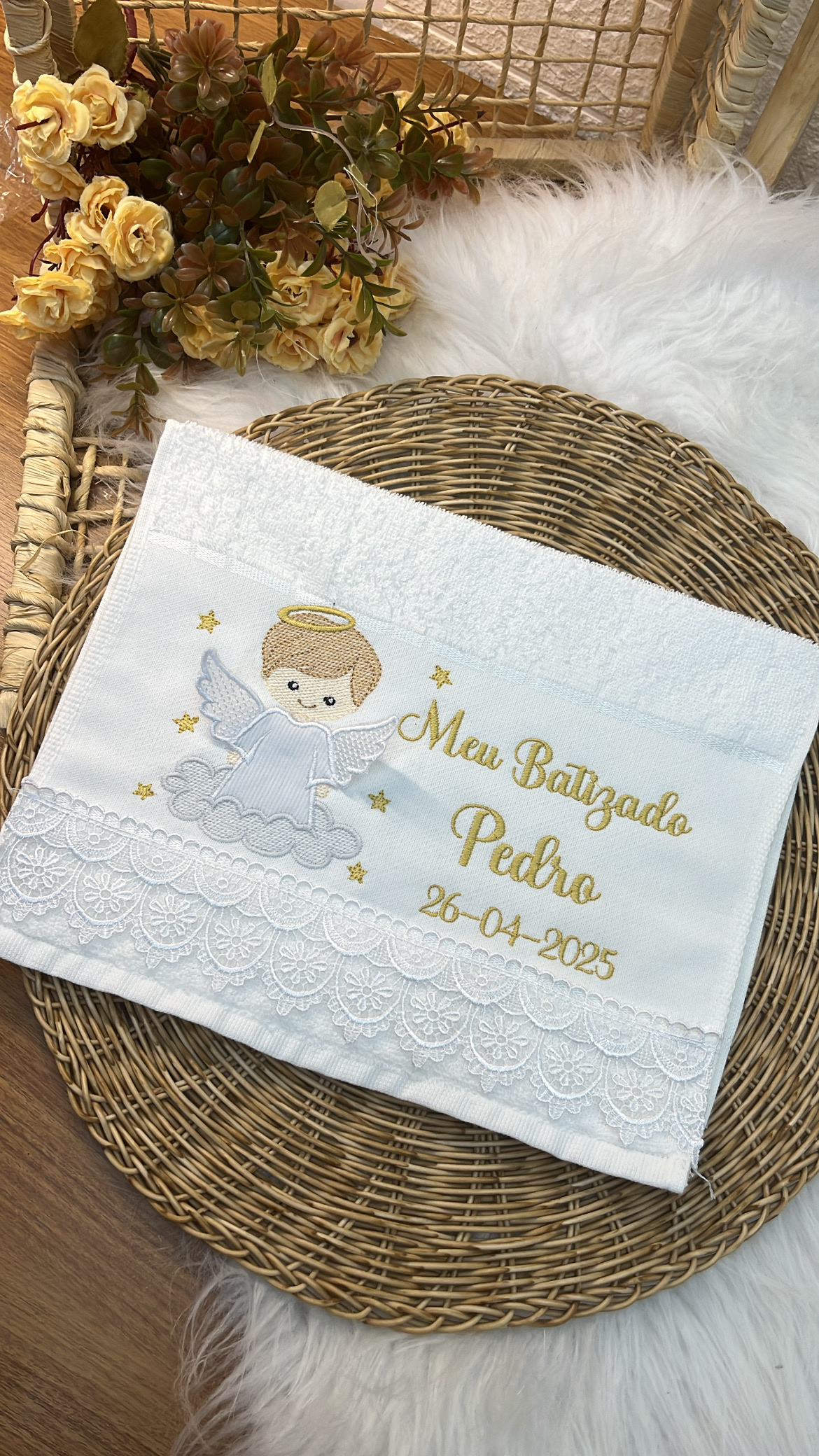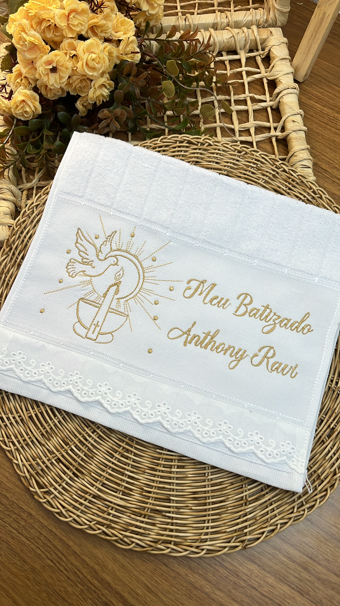 Transforme este momento em uma lembrança eterna com nossa toalha de batizado infantil personalizada!