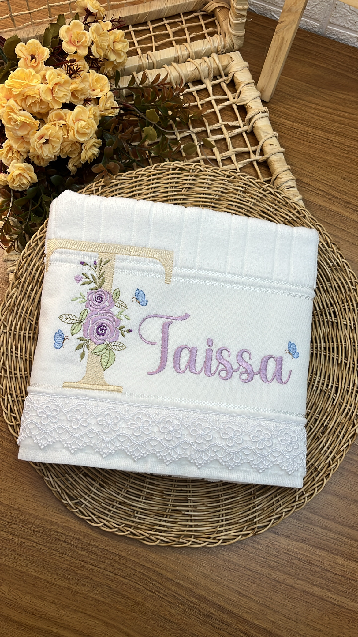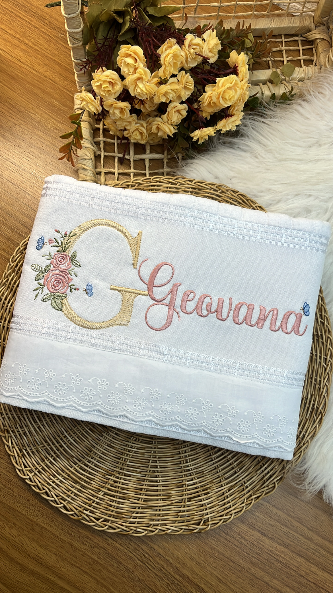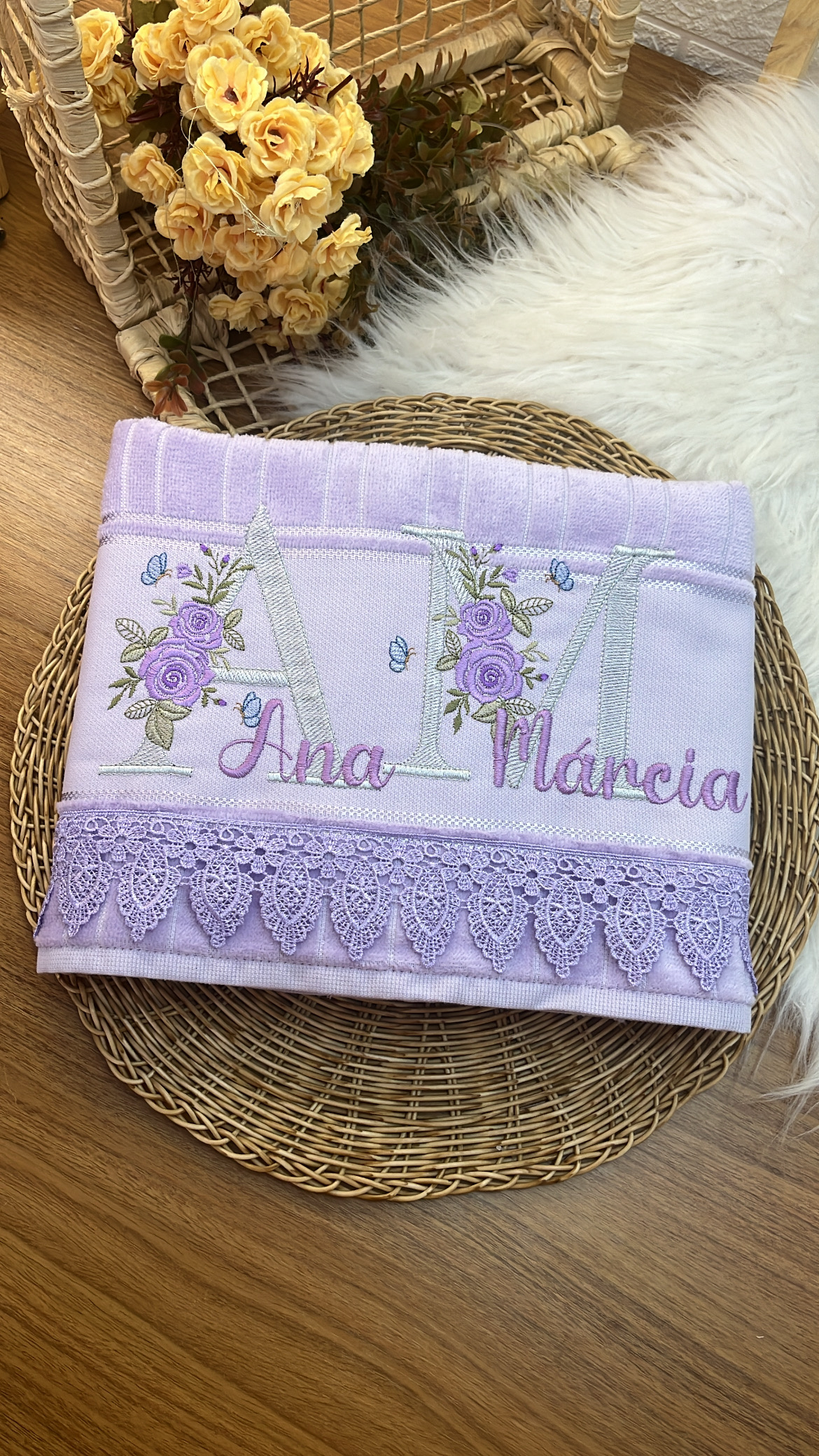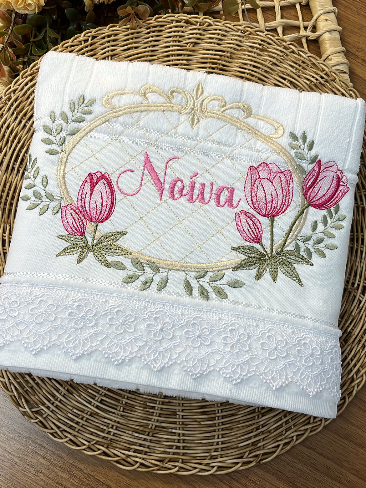 Com uma toalha personalizada
