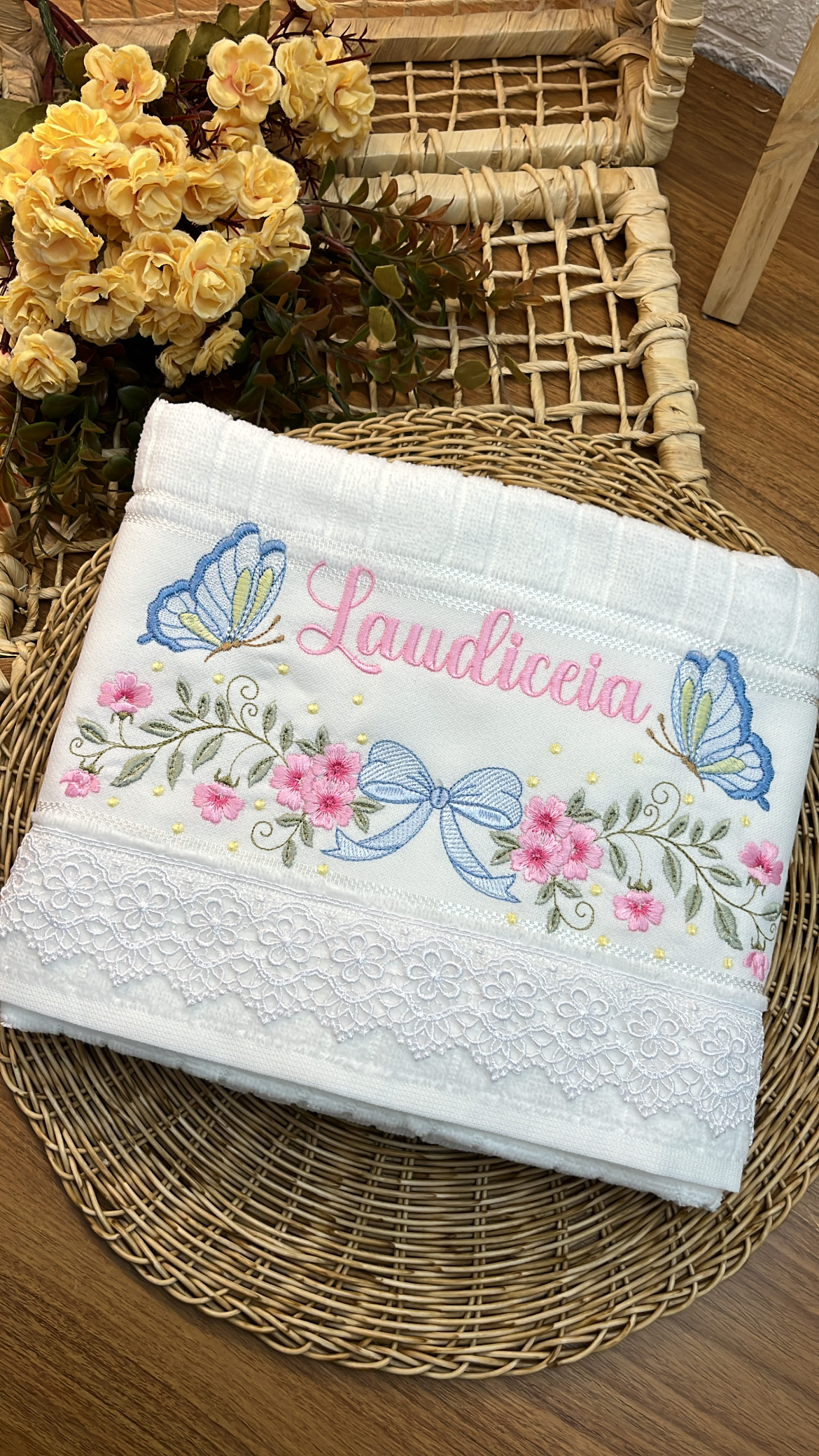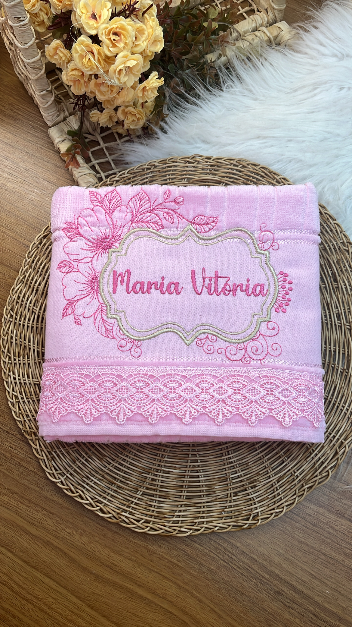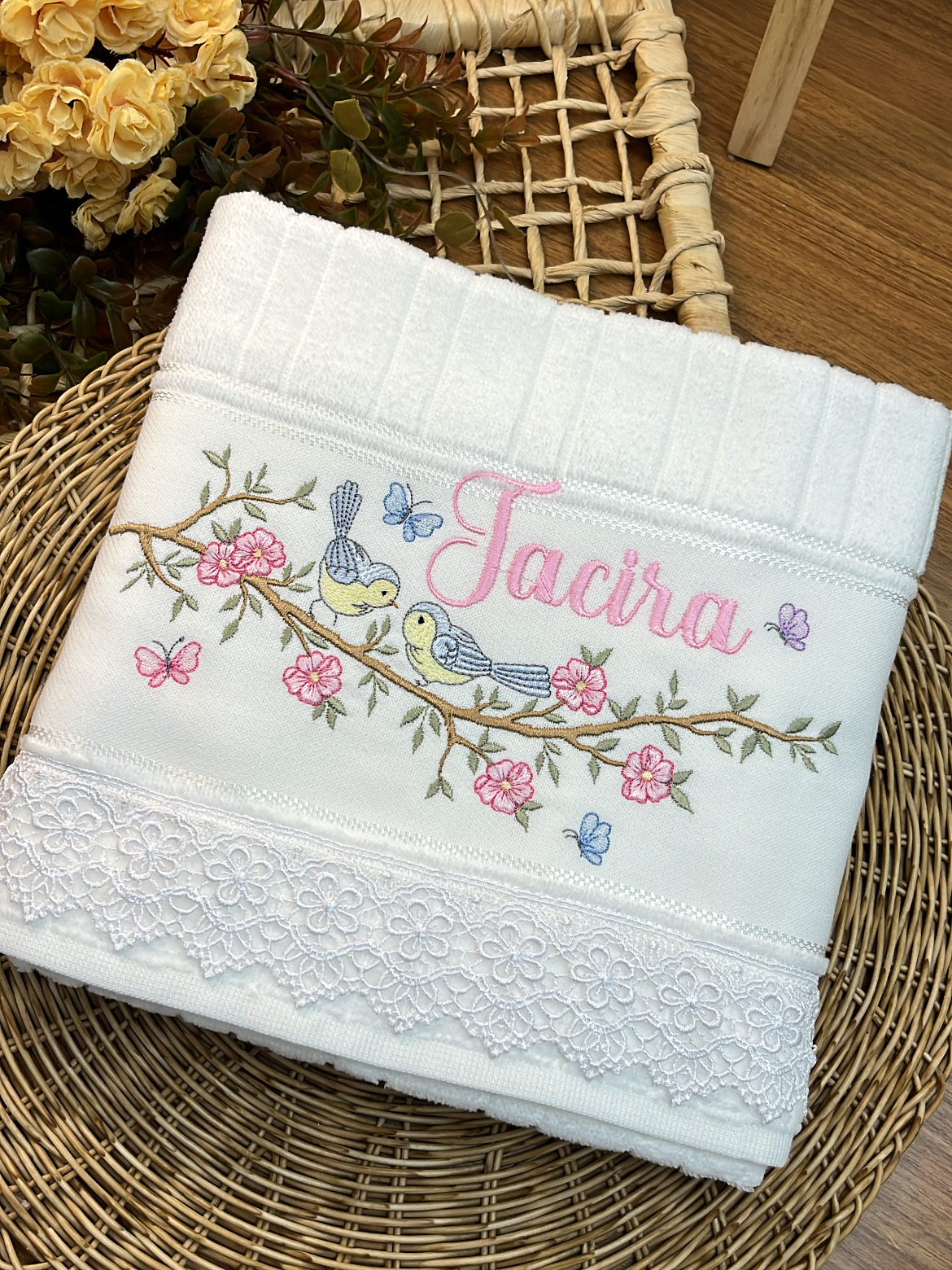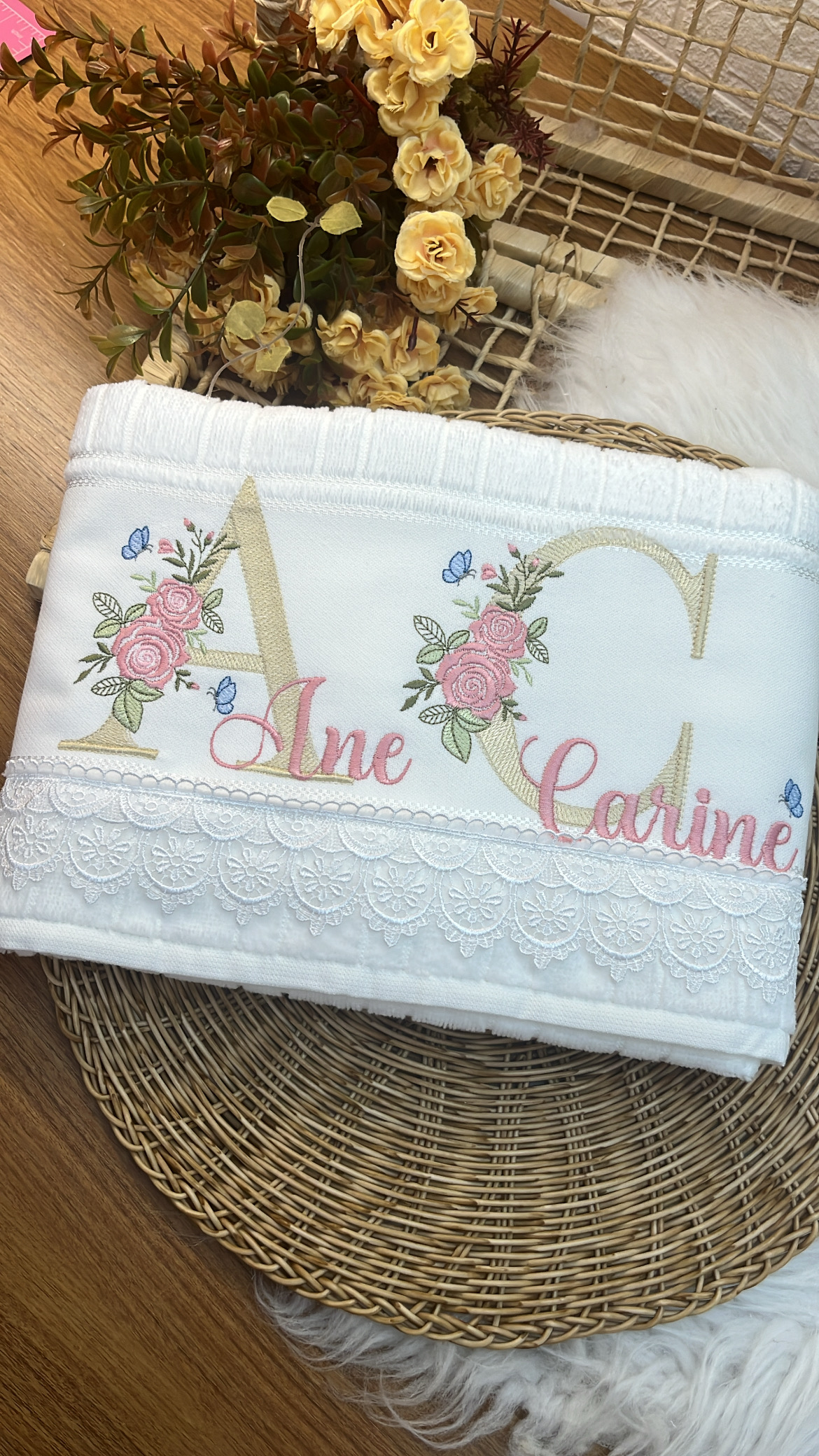 Com uma toalha personalizada