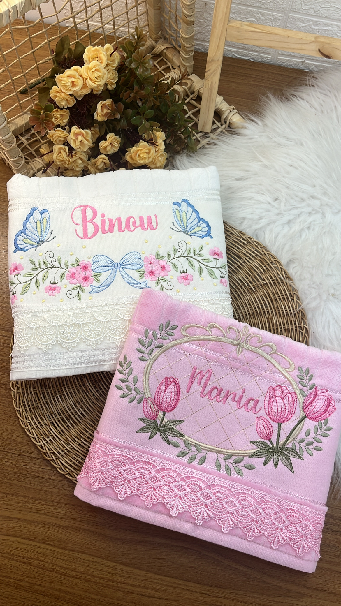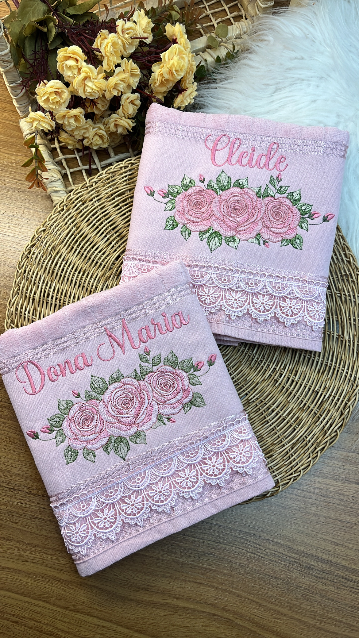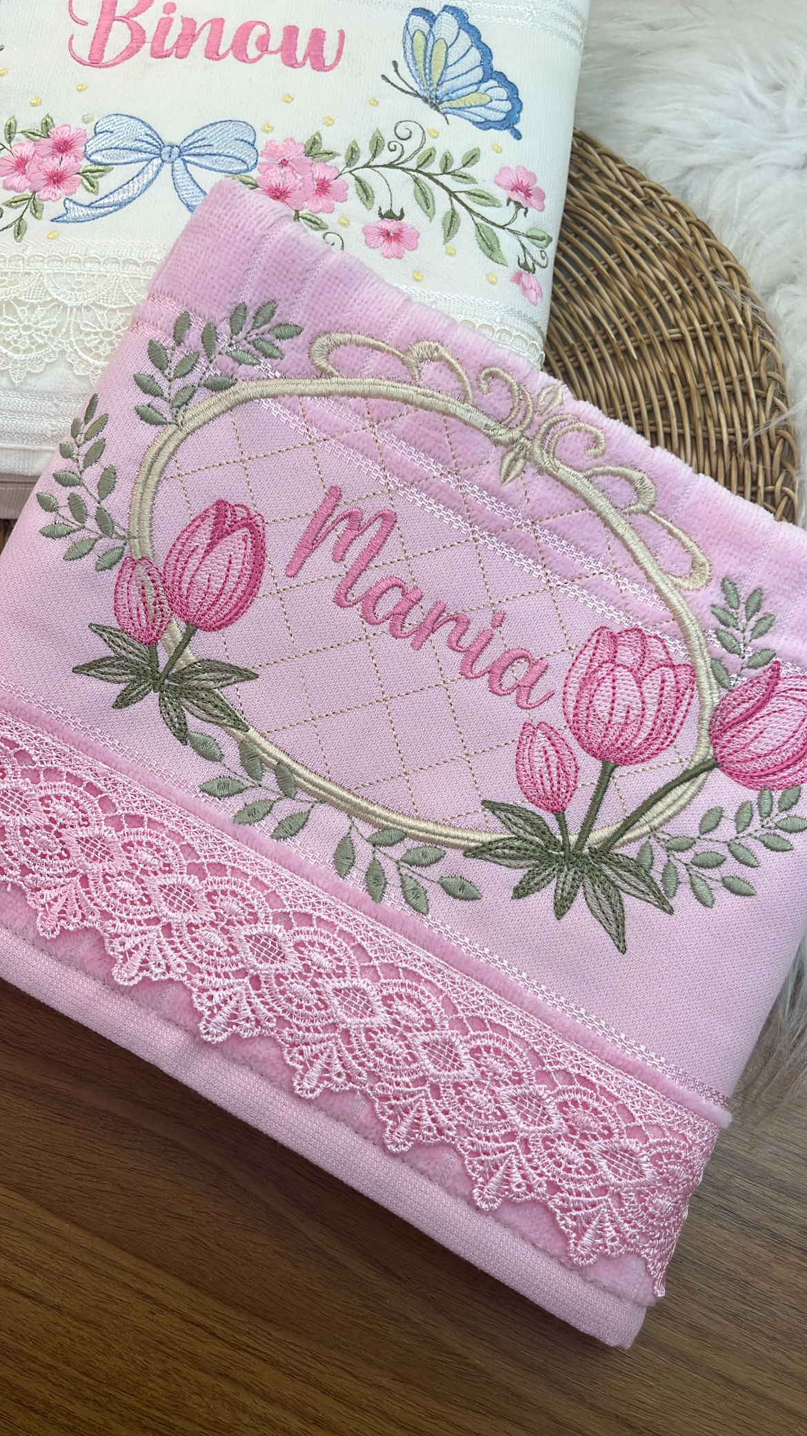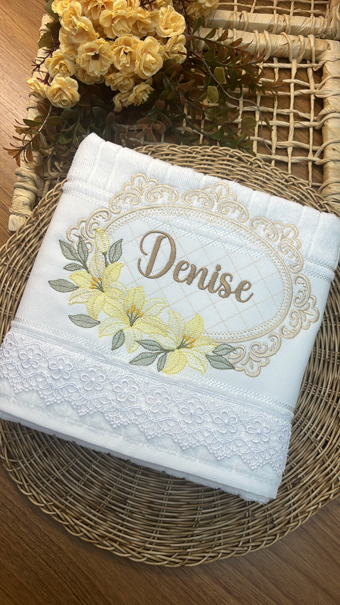 Com uma toalha personalizada